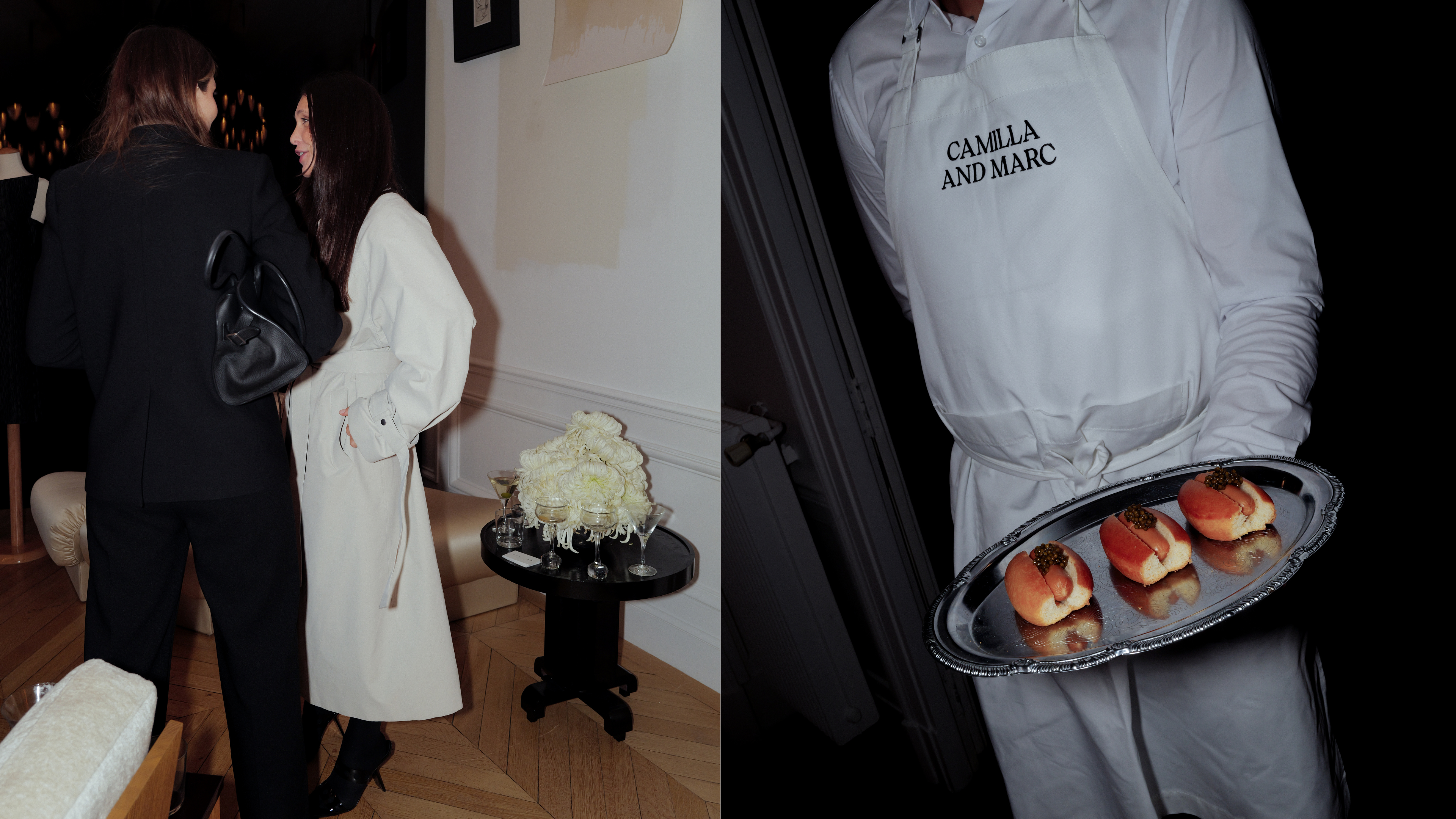 Guests were invited into the CAMILLA AND MARC apartment, a private showroom specially curated in collaboration with luxury lifestyle destination The Oblist. Overlooking the Tuileries on Rue de Rivoli, the evening unfolded with chic bites, bespoke cocktails, and a gathering of industry tastemakers.