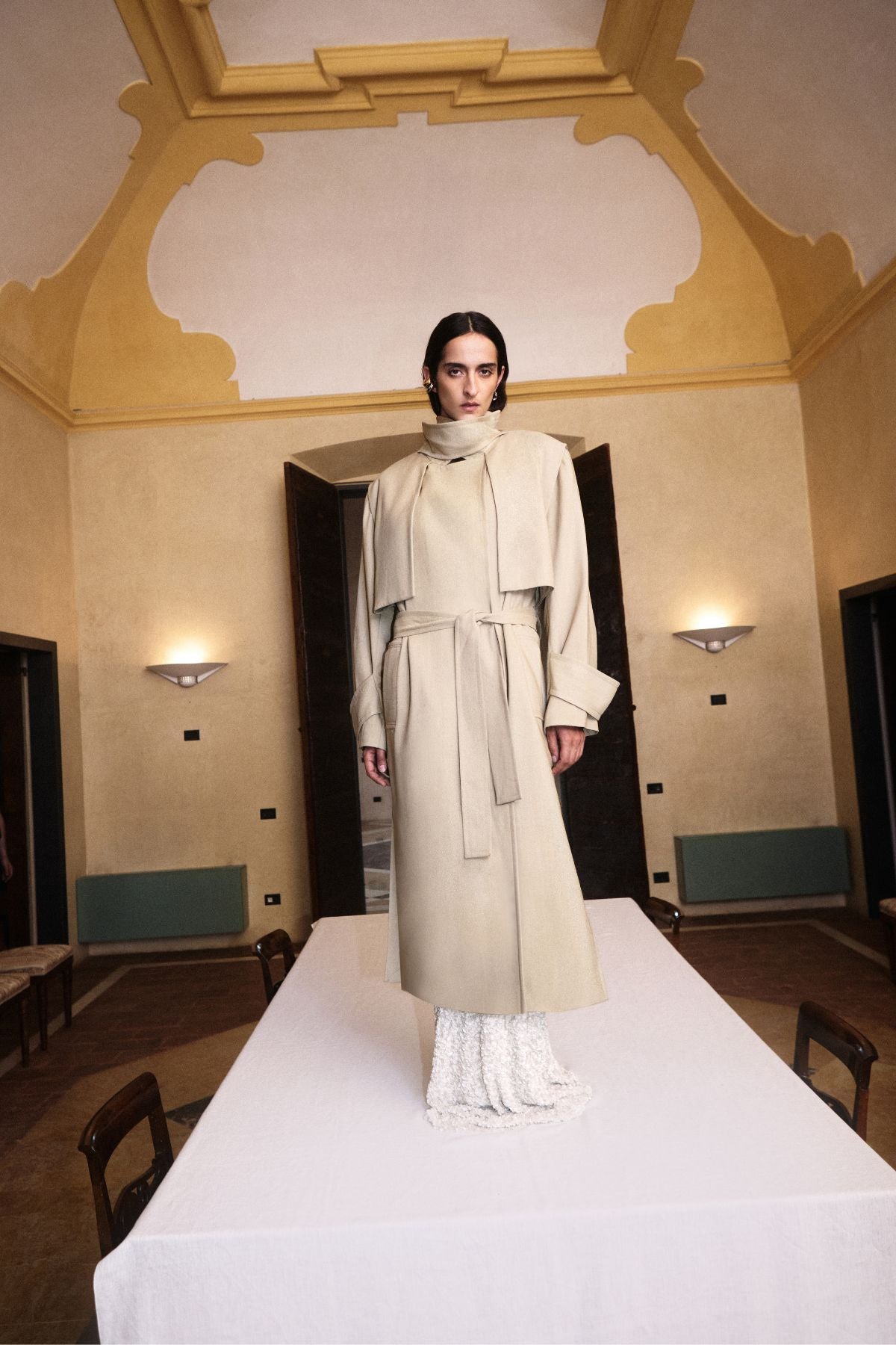 CAMILLA AND MARC Resort 26 is a study in sculptural refinement, inspired by the elemental beauty of nature and the subtractive philosophy of artist Alexandros Zygouris. Soft tailoring, fluid draping, and tactile textures evoke transformation and erosion, while a grounded palette and sculptural accessories reflect a quiet strength. The collection reimagines classic forms through a poetic, architectural lens.